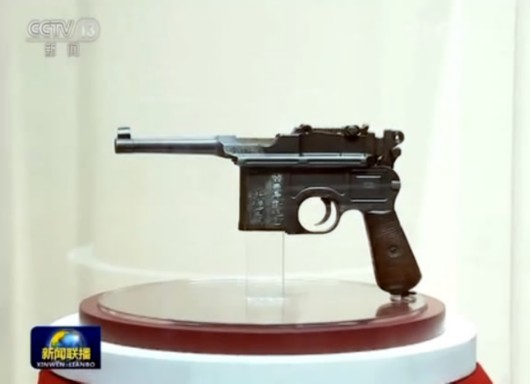 1956年3月,中國人民解放軍政治學(xué)院舉行授旗和開學(xué)典禮儀式。不久,人們就在學(xué)院的軍史陳列室中見到了一把漂亮的駁殼槍。這是德國造的7.63毫米口徑的毛瑟警用型手槍,槍號為592032,彈匣可容彈10發(fā)。這種槍在第一次世界大戰(zhàn)后開始批量進入中國,僅20世紀(jì)二三十年代即有數(shù)十萬支裝備于中國各派軍隊中。但數(shù)十萬支槍中的這一把卻不同尋常。1959年中國人民革命軍事博物館成立后,這把槍即被移交過來,做為一級文物珍藏并展出。