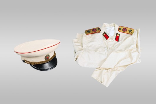 朱德穿過的五五式元帥服 年代:1955至1965年質(zhì)地:五五式元帥禮服:純毛嗶嘰五五式元帥棕色常服:純毛華達(dá)呢五五式元帥白色常服:毛凡爾丁