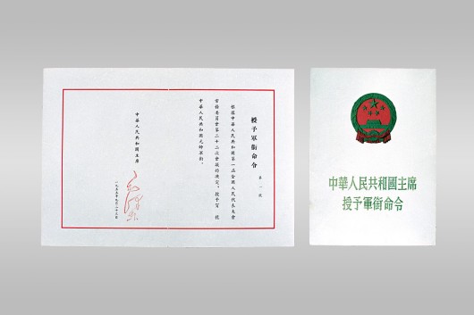 1955年9月,中國人民解放軍開始實行軍銜制度。27日,在北京舉行授予元帥軍銜及勛章典禮。中華人民共和國主席毛澤東將“授予中華人民共和國元帥軍銜的命令狀”授予朱德、彭德懷、林彪、劉伯承、賀龍、陳毅、羅榮桓、徐向前、聶榮臻、葉劍英。同日,國務(wù)院舉行授予將官軍銜和勛章的典禮。由朱德夫人康克清捐贈軍事博物館。