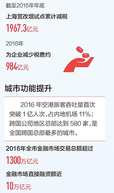 發(fā)展活力看什么?看市場(chǎng)主體。近幾年,上海新增企業(yè)比例、企業(yè)活躍度都很高。2012年年初,上海率先試點(diǎn)營改增,截至2016年年底,累計(jì)減稅1967.3億元。去年,我們著力降低制度性交易成本,采取了一系列減稅降費(fèi)措施,為企業(yè)減少稅費(fèi)約984億元,今年預(yù)計(jì)再減負(fù)超過400億元。創(chuàng)新轉(zhuǎn)型不會(huì)一蹴而就,我們將更加積極主動(dòng)適應(yīng)和引領(lǐng)新常態(tài),堅(jiān)持以供給側(cè)結(jié)構(gòu)性改革為主線,向深化改革要活力,向全面創(chuàng)新要?jiǎng)恿,向結(jié)構(gòu)調(diào)整要助力,向資源節(jié)約和環(huán)境保護(hù)要推力。