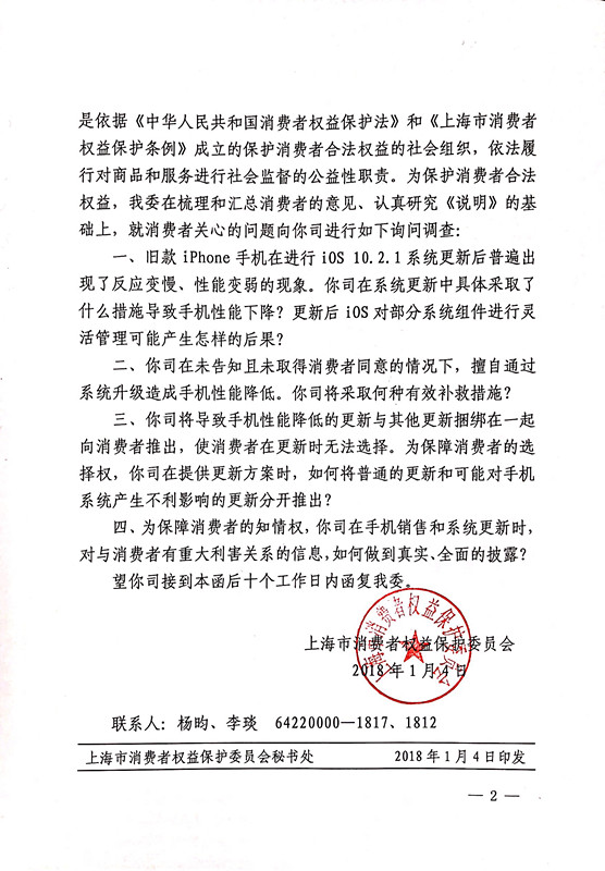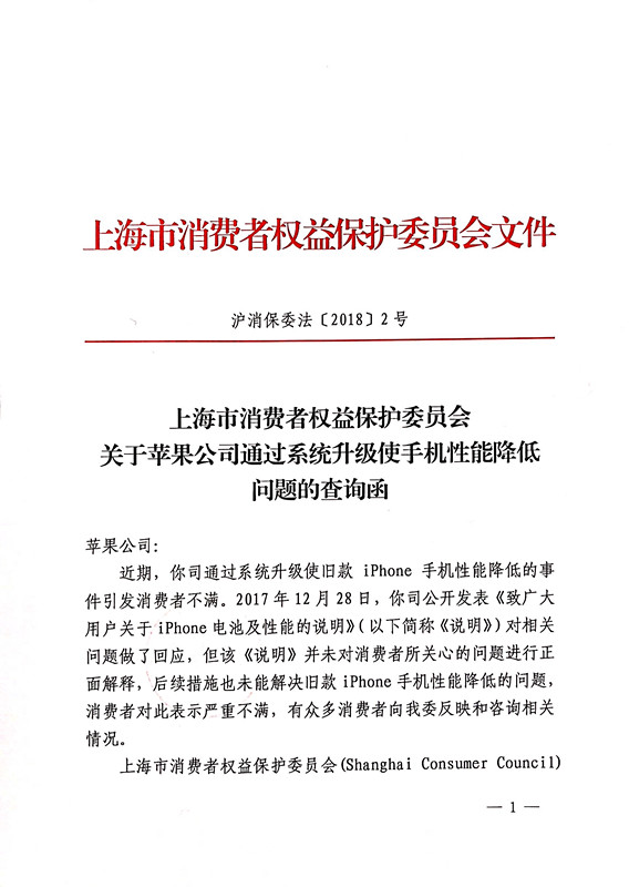 近期,蘋果公司通過系統(tǒng)升級造成舊款iPhone手機(jī)性能降低的行為引起消費(fèi)者的嚴(yán)重不滿,上海市消保委也收到了大量消費(fèi)者的相關(guān)咨詢和投訴。