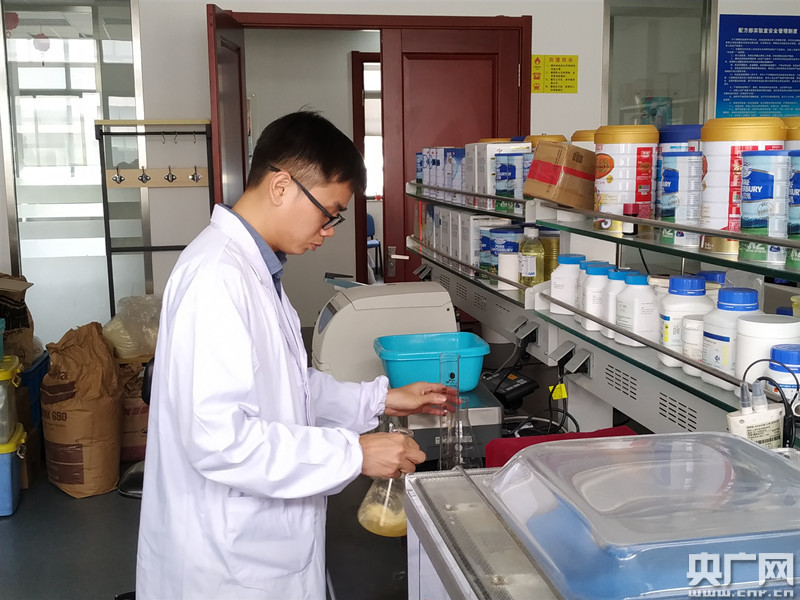 光明乳業(yè)研究院研究人員正在進(jìn)行產(chǎn)品檢測(cè) (央廣網(wǎng)記者 林馥榆攝)