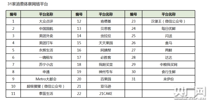 12家需與客服溝通完成退款,分別是泰笛生活、肯德基、貝思客、貨拉拉、天天果園、阿姨幫、必勝客、我廚買菜、神州專車、百果園、亞馬遜、食行生鮮。5家經(jīng)上海市消保委溝通后承諾以后可以退款,分別是漢堡王(微信公眾號)、每日優(yōu)鮮、閃送、盒馬、21CAKE。