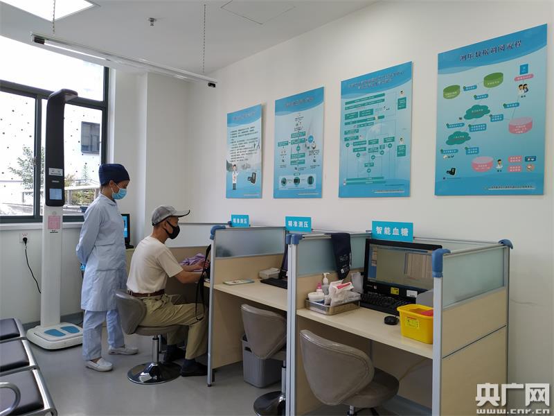 居民在工作人員幫助下進(jìn)行精準(zhǔn)測壓(央廣網(wǎng)記者 林馥榆 攝)