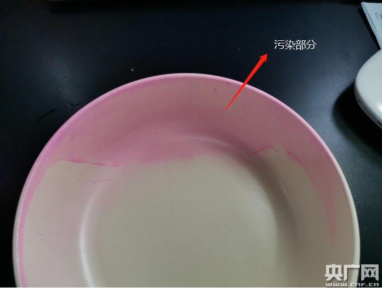 密胺類餐具時常出入廚房,免不了在濕熱環(huán)境下放置或使用,“耐高溫”“不易碎”等常常成為商家宣傳的“賣點”,耐濕熱性主要考核的就是產(chǎn)品在濕熱環(huán)境下的品質(zhì)。另外,日常使用中,食物的顏色、殘渣等會沾染在餐具上,餐具到底耐不耐臟,也是消費者關心的一個方面。本次比較試驗結(jié)果顯示,耐濕熱測試后,有5件樣品產(chǎn)生裂紋,其中4件為竹纖維餐具,1件為普通密胺餐具,如標稱由廣州簡米餐具有限公司生產(chǎn)的網(wǎng)紋山水8.5英寸面碗,經(jīng)相關測試后,邊緣出現(xiàn)裂紋(詳見圖二);4件樣品的耐污染性較差,其中3件為竹纖維餐具,1件為普通密胺餐具,如標稱由安徽輕工國際貿(mào)易股份有限公司生產(chǎn)的天然竹纖維多用淺碗,經(jīng)相關測試后,有明顯污染(詳見圖三)。