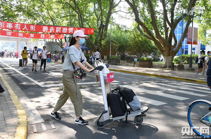 新生使用機(jī)場(chǎng)集團(tuán)免費(fèi)提供的愛(ài)心行李小推車(央廣網(wǎng)發(fā) 同濟(jì)大學(xué)提供)