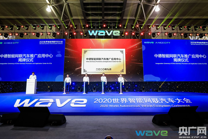 活動(dòng)現(xiàn)場(chǎng),中德智能網(wǎng)聯(lián)汽車(chē)推廣應(yīng)用中心在2020世界智能網(wǎng)聯(lián)汽車(chē)大會(huì)上正式揭牌。