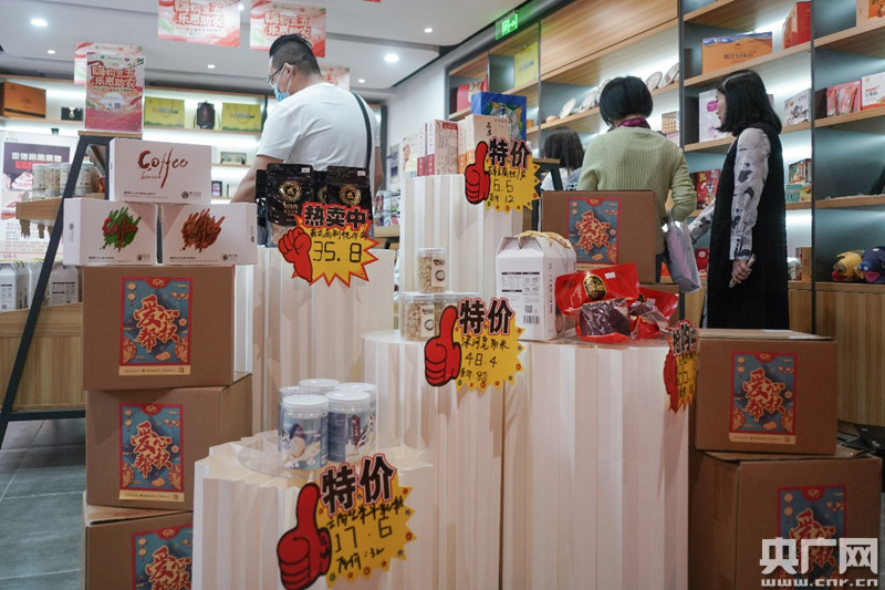 “五五購(gòu)物節(jié)”期間,拼多多將為上海以及全國(guó)消費(fèi)者持續(xù)發(fā)放購(gòu)物福利。在靜安區(qū)一家“百縣百品”直營(yíng)店,上海市民正在熱情選購(gòu)特價(jià)農(nóng)特產(chǎn)品。(央廣網(wǎng)發(fā) 李林?jǐn)z)