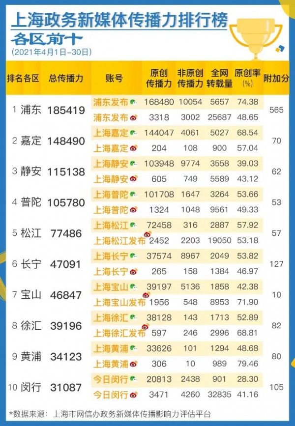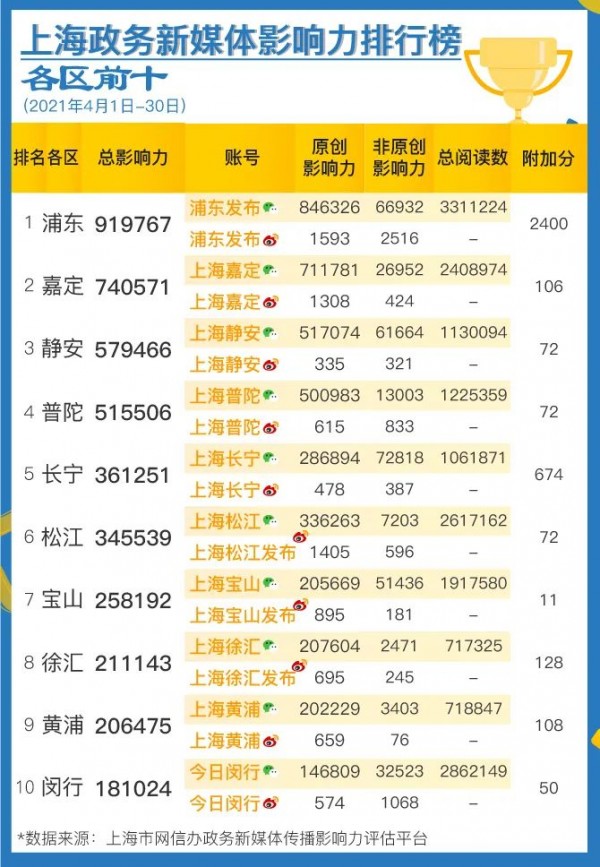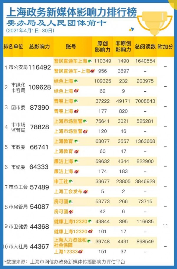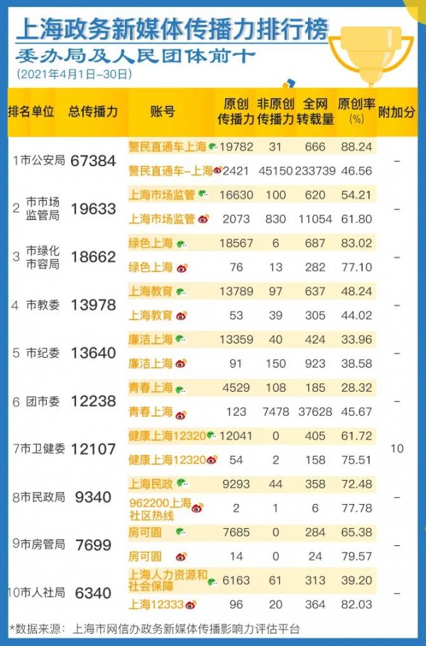 區(qū)級榜單中,靜安區(qū)、徐匯區(qū)聚焦區(qū)內(nèi)民生實事,加強信息發(fā)布,多篇稿件獲媒體關(guān)注,排名提升。委辦局和人民團體榜單中,市總工會、市人社局加強政策解讀,提升信息發(fā)布時效性,進步明顯。