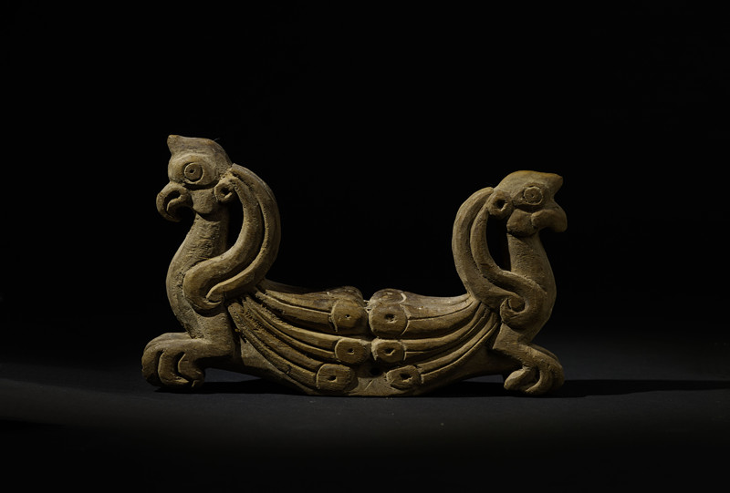 憑借強(qiáng)大的國力,貴霜王朝不僅對周邊地區(qū)產(chǎn)生一定的文化影響,而且在經(jīng)濟(jì)上產(chǎn)生了更為深入的影響。中亞地區(qū)最具特色的本土藝術(shù)就是建筑裝飾。當(dāng)貴霜人成為這一地域的統(tǒng)治者之后,他們?nèi)诤掀渌囆g(shù)形式并盡情發(fā)揮,將建筑裝飾藝術(shù)也推向了一個新的階段。在展品“木雕人獸飾板”中刻畫的有翼神獸是虛構(gòu)的神話動物,大象也不可能出現(xiàn)于古代和田地區(qū),這兩種動物形象的同時出現(xiàn)說明了古代和田人與外部世界的溝通交流。