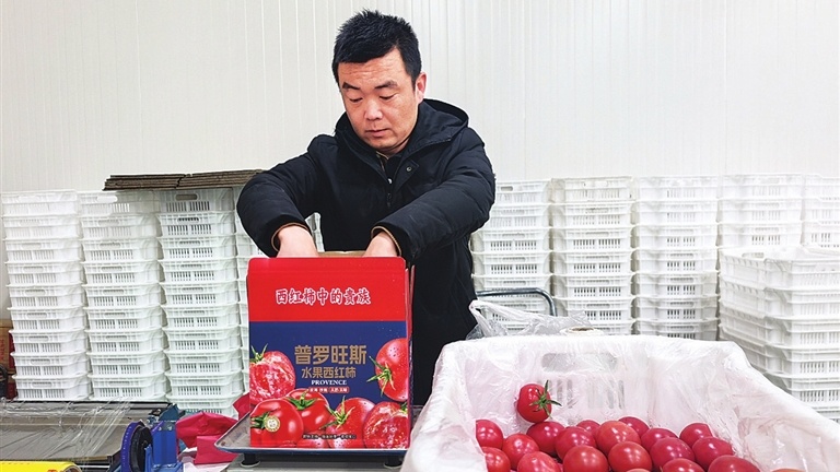 春寒料峭的三月初,一座座溫室大棚里,成串的普羅旺斯西紅柿掛滿藤蔓。