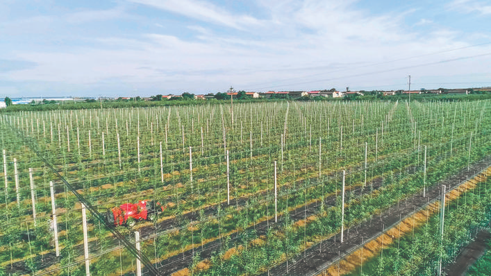 “以前管理果園,剪枝、套袋、摘袋……環(huán)節(jié)多得數(shù)不清,天天從早忙到晚!北本班l(xiāng)峰仙村果農(nóng)雷曙光對比今昔,感觸頗深,“現(xiàn)在新果園,水肥一體化,機(jī)械化管理,不用套袋,最關(guān)鍵的是蘋果熟得早、糖度高、價(jià)錢好!”