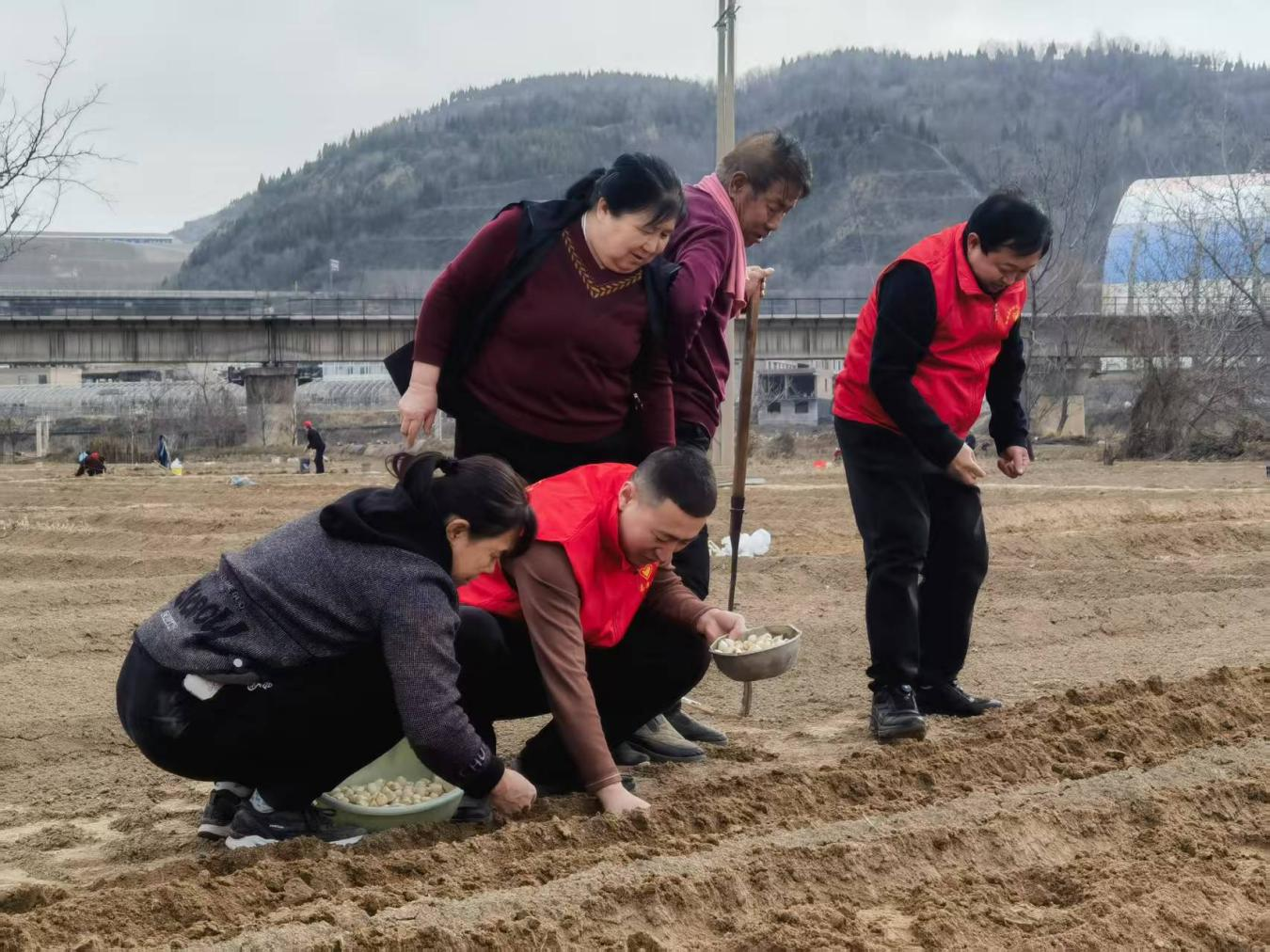 柳林縣穆村鎮(zhèn)黨委組織黨員干部在田間地頭開展紫皮蒜種植田間培訓(xùn),老黨員現(xiàn)場手把手傳授種植技巧,青年干部全員上手翻地播種,助力春耕備耕。