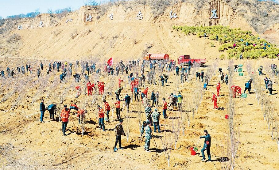 3月12日,沁源縣組織750余名黨員干部在該縣沁河鎮(zhèn)曹家園村開展植樹造林活動(dòng),為當(dāng)?shù)爻掷m(xù)增綠貢獻(xiàn)力量。記者 王彥軍攝