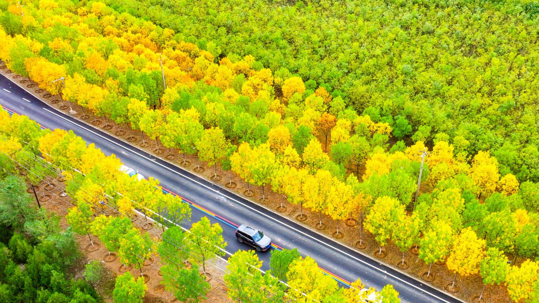 運城市鹽湖區(qū)換“秋裝” 道路秋葉染金黃