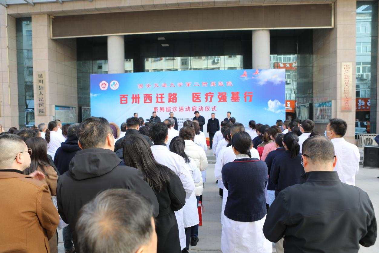春風(fēng)送暖,醫(yī)心灼灼。啟動(dòng)儀式現(xiàn)場(chǎng)氛圍莊重而熱烈,懸掛的“百卅西遷路·醫(yī)療強(qiáng)基行”橫幅格外醒目,來(lái)自西安交通大學(xué)醫(yī)學(xué)部、交大一附院、二附院、口腔醫(yī)院及延川縣人民醫(yī)院的醫(yī)護(hù)人員、當(dāng)?shù)厝罕婟R聚一堂,共同見(jiàn)證這一踐行西遷初心、守護(hù)基層健康的重要時(shí)刻。