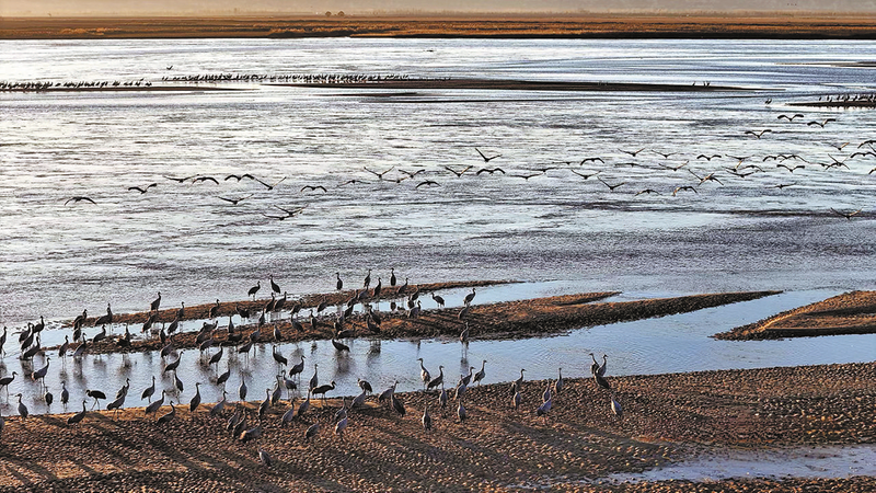 除了常住居民白鷺、綠頭鴨等留鳥外,一群群天鵝、大雁等候鳥翩躚而至,它們或在水面嬉戲、或在沙洲休憩、或在空中盤旋,為母親河增添了無限生機。