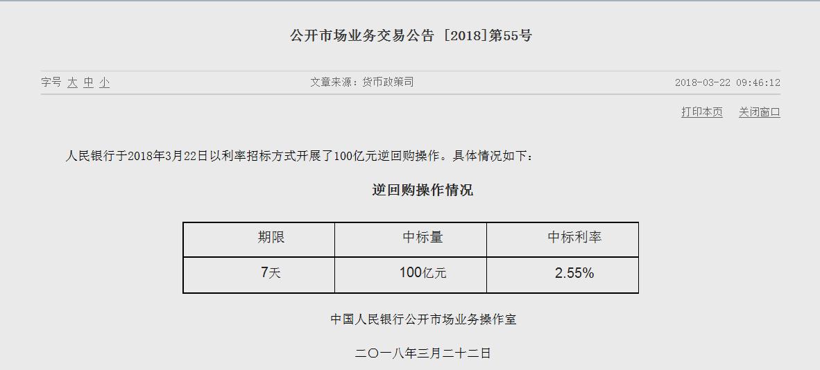 2018年3月22日人民銀行開展的逆回購中標利率小幅上行5個基點,媒體就此采訪了人民銀行公開市場業(yè)務操作室負責人。