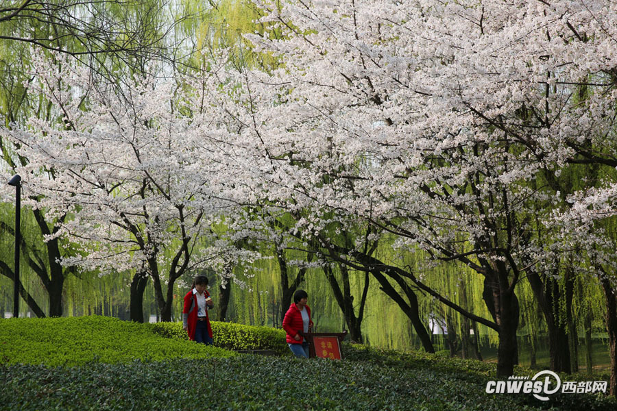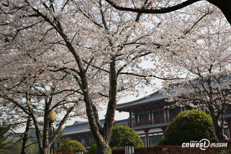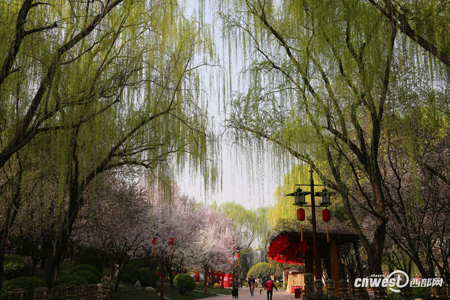 3月15日,西安大唐芙蓉園花紅柳綠,滿園春色與唐風(fēng)古韻的建筑融合在一起,嫵媚醉人。 西部網(wǎng)訊(記者 魏永賢)陜西連續(xù)近一周的艷陽天,讓氣溫迅速回暖,柳條抽新芽,多地櫻花、桃花相繼開放。3月15日,西安大唐芙蓉園里花紅柳綠,滿園春色與唐風(fēng)古韻的建筑融合在一起,嫵媚醉人。 -