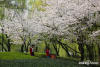 白色櫻花紅滿枝頭,冰清玉潔,美不勝收。 -