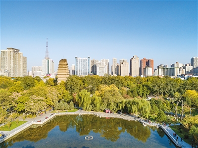 10月31日下午,西安城區(qū)天空湛藍純凈,萬里無云。 記者竇翊明 攝