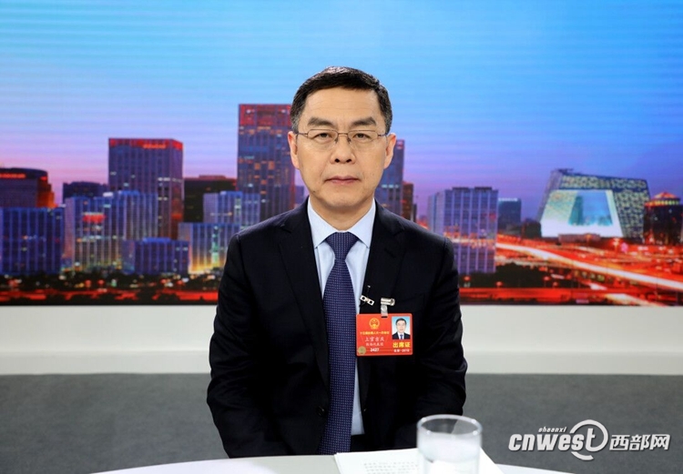 全國(guó)人大代表、西安市市長(zhǎng)上官吉慶接受采訪。