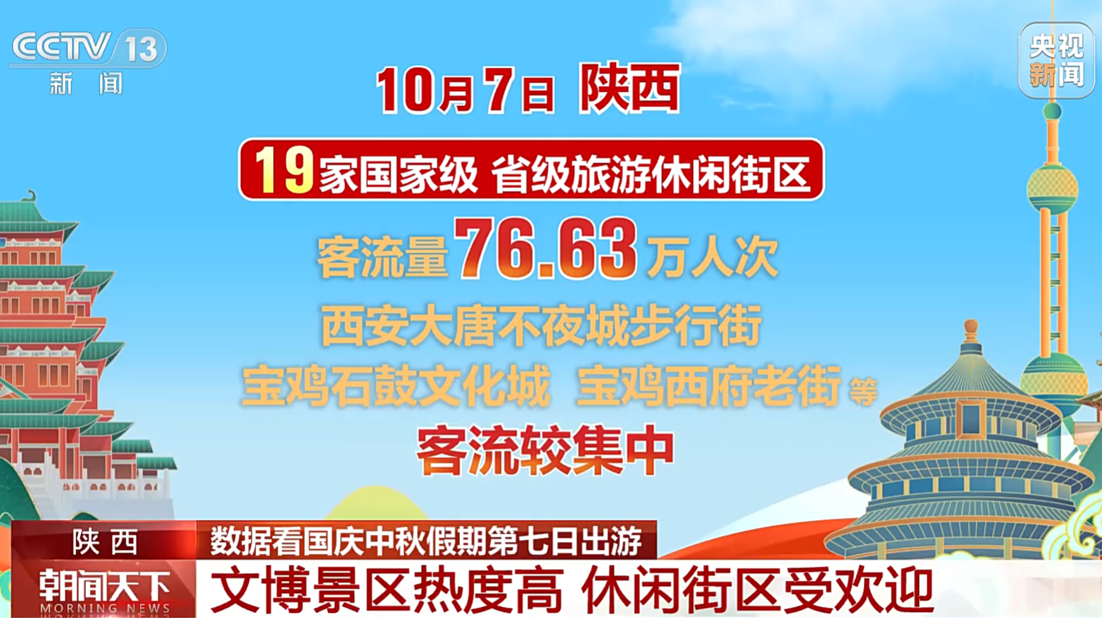 數(shù)據(jù)看國慶中秋假期第七日出游·陜西:文博景區(qū)熱度高,休閑街區(qū)受歡迎。