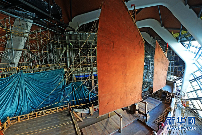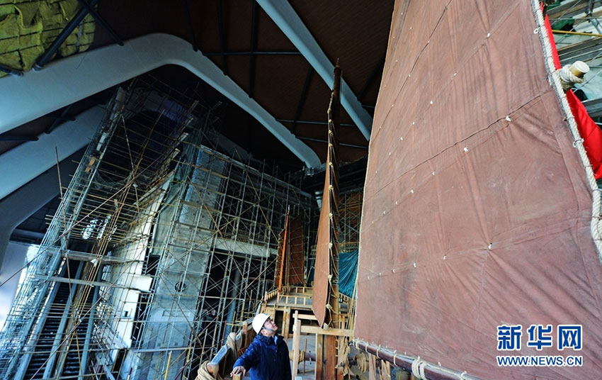 圖為在國(guó)家海洋博物館主體通過(guò)驗(yàn)收的“宋元福船”。新華網(wǎng)發(fā)(史淞予 攝) 12月16日,從國(guó)家海洋博物館獲悉,我國(guó)完整復(fù)原古船的珍貴展品,堪稱(chēng)海洋文化國(guó)寶級(jí)館藏的“宋元福船”復(fù)原項(xiàng)目主體通過(guò)驗(yàn)收。 據(jù)了解,船型設(shè)計(jì)參考了中國(guó)古代船舶技術(shù)的相關(guān)文獻(xiàn)考證及研究、考古發(fā)掘出土的典型古船及配置資料以及現(xiàn)代傳統(tǒng)木質(zhì)帆船制造工藝。 -