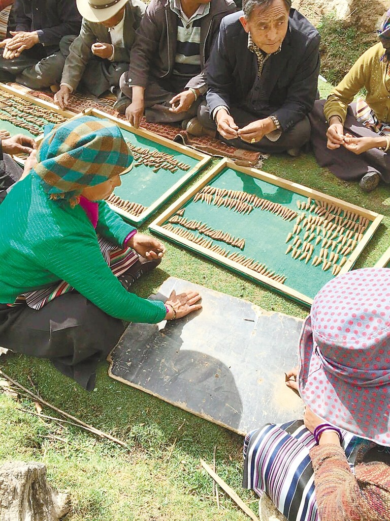 拉薩市尼木縣吞巴鄉(xiāng)吞達村村民正在手工制作藏香(記者 王雨霏 攝)