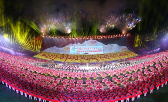 7月22日晚,西藏自治區(qū)第十二屆運(yùn)動(dòng)會(huì)暨第四屆民族傳統(tǒng)體育運(yùn)動(dòng)會(huì)在拉薩隆重開幕。圖為開幕式現(xiàn)場。記者姚海全攝