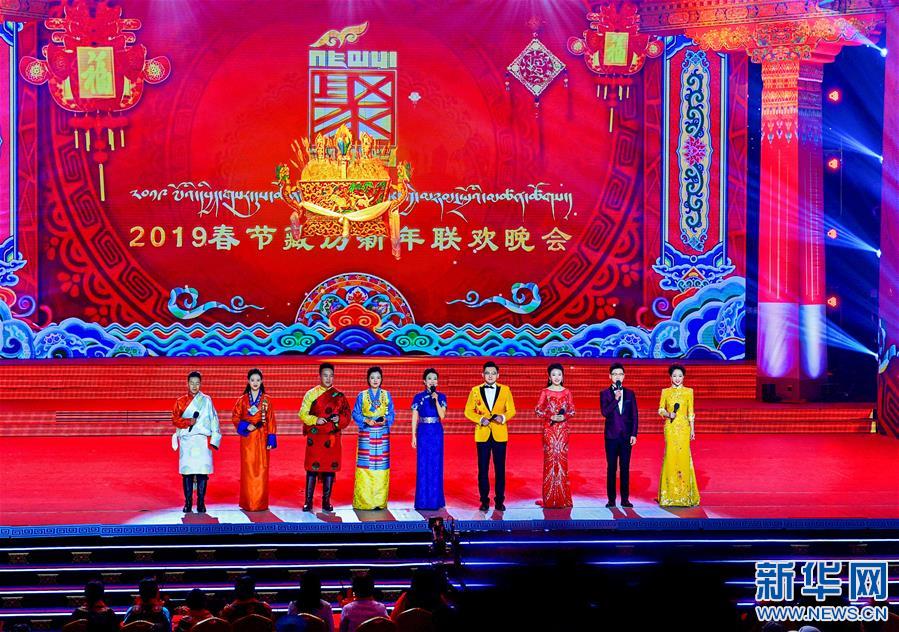 2019春節(jié)藏歷新年聯(lián)歡晚會(huì)的錄制現(xiàn)場(1月19日攝)。新華社記者 張汝鋒 攝