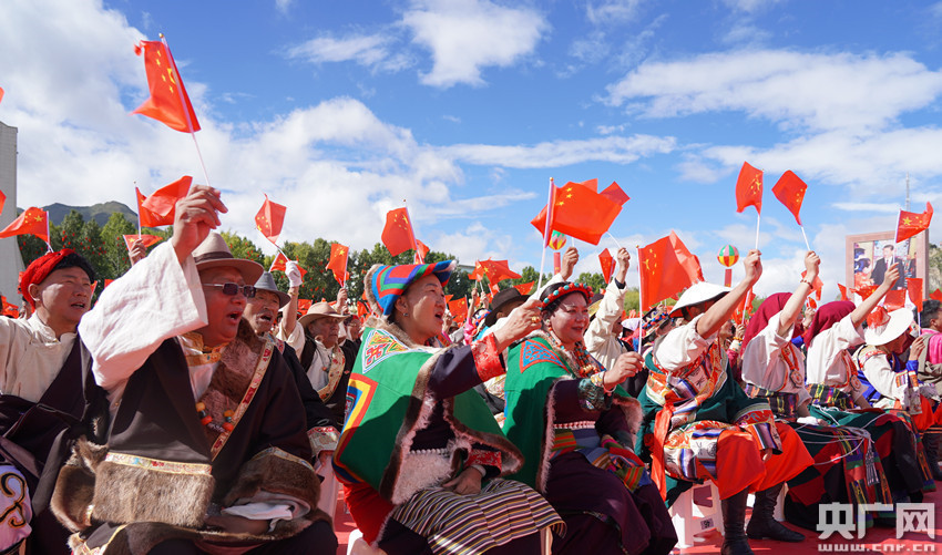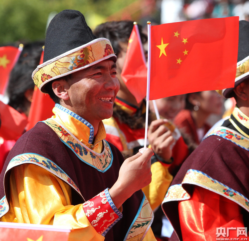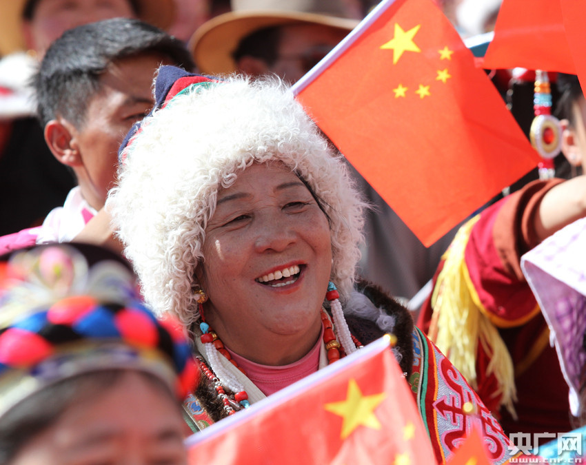 來西藏各地的群眾代表聚在一起,表達(dá)對(duì)祖國的摯愛與祝福。(央廣網(wǎng)記者 普布次仁 攝)