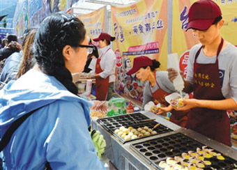 “我特別喜歡吃臺灣牛軋?zhí)?有股濃郁的奶香味,味道又純又甜!痹谡桂^內(nèi)參觀的藏族女大學(xué)生次仁德吉說,“臺灣展商來一次不容易,這次一定要多買些臺灣零食。”