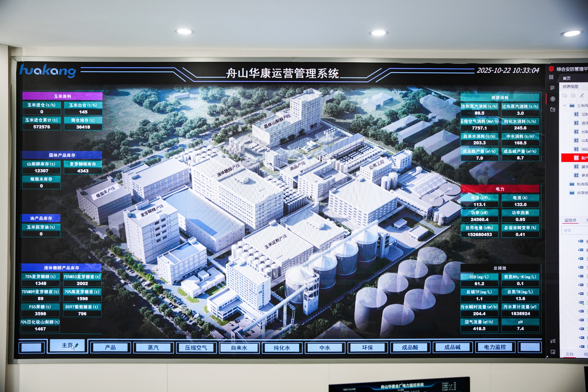 透過該企業(yè)的運營管理系統(tǒng),可以清晰地看到各個板塊的數據情況,玉米原料進出倉情況、山梨醇和麥芽糊精等固體產品庫存量、資源消耗量等一目了然!拔覀円还灿4座玉米筒倉,每座倉容約1.5萬噸,可以容納約6萬噸玉米。”