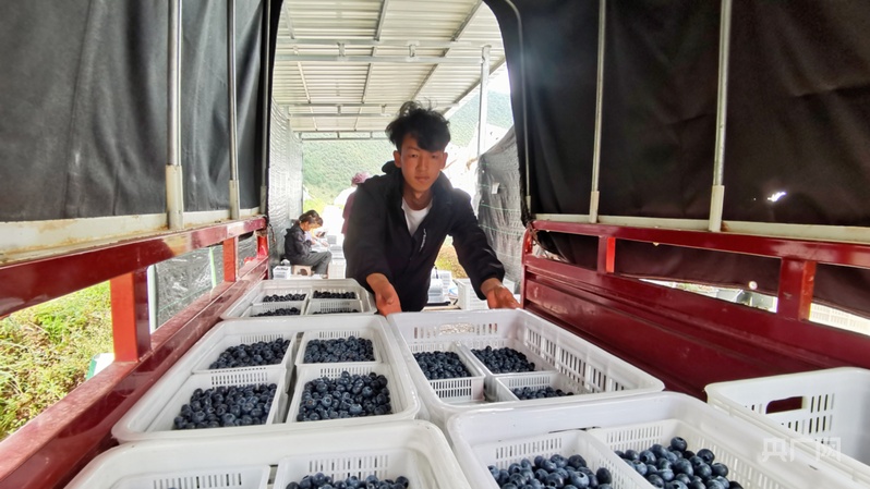 一簇簇藍莓掛滿枝頭,果實飽滿透亮,成為當?shù)卮迕裨鍪盏闹匾獊碓础?/em>