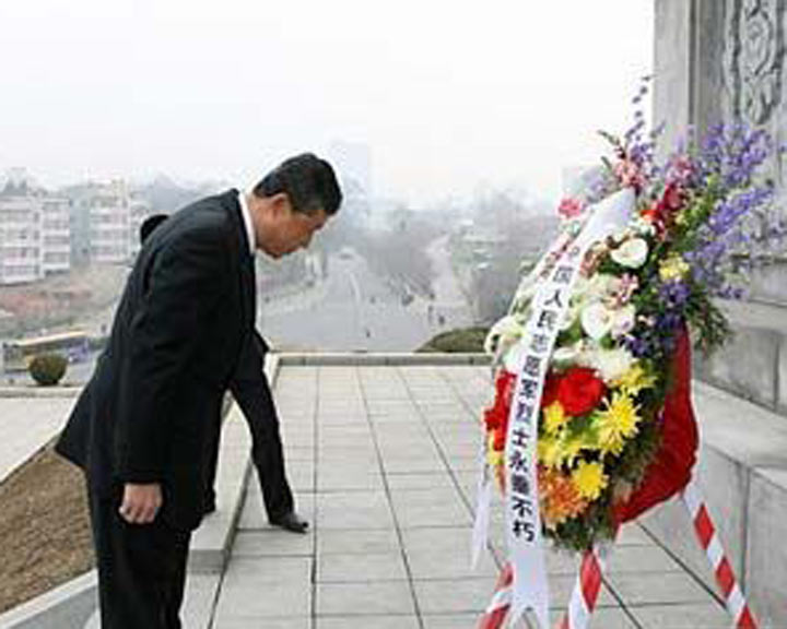 中國(guó)駐朝使館祭掃志愿軍烈士墓