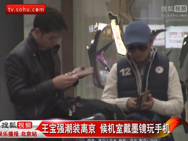 王寶強潮裝離京 候機室戴墨鏡玩手機