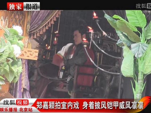 鄭嘉穎拍室內戲 身著鎧甲披風威風凜凜