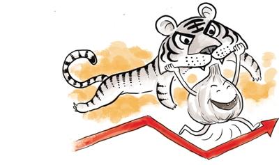 實(shí)際上,大蒜價(jià)格這次突然加速走高,投機(jī)炒作者推波助瀾功不可沒。目前,實(shí)體經(jīng)濟(jì)不景氣,股市低迷,房地產(chǎn)業(yè)整體走低,而大量社會(huì)游資像無頭蒼蠅一樣亂撞,極有可能趁機(jī)再次進(jìn)入到大蒜中進(jìn)行爆炒。同時(shí),有上兩次成功炒作的示范效應(yīng),不排除許多游資想再賺一筆的可能。