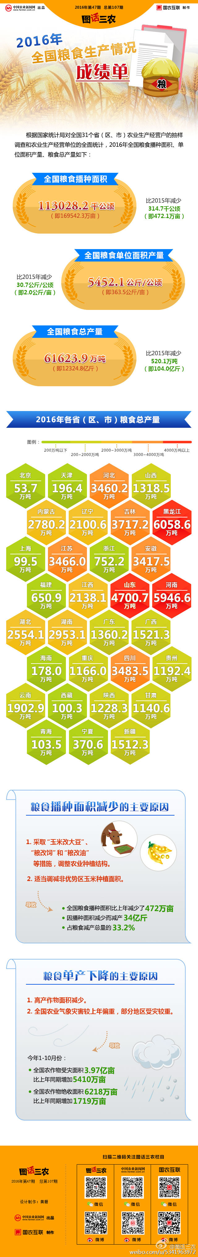 2016年全國(guó)糧食生產(chǎn)情況成績(jī)單