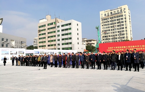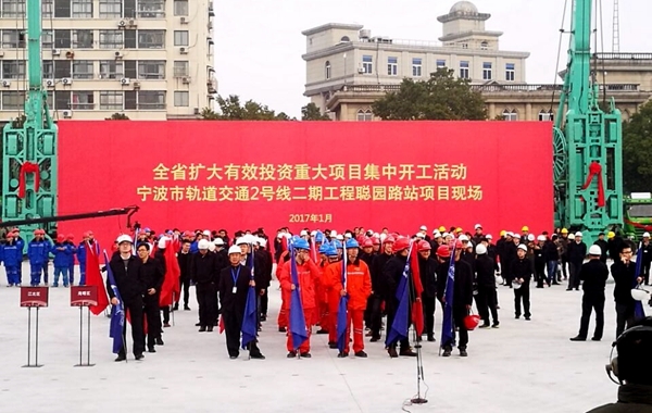 省委常委、寧波市委書(shū)記、代市長(zhǎng)唐一軍在向主會(huì)場(chǎng)匯報(bào)時(shí)說(shuō):2016年,寧波市兩批集中開(kāi)工項(xiàng)目157個(gè)已全部按時(shí)開(kāi)工建設(shè),超額完成全年投資任務(wù)。預(yù)計(jì)全年完成有效投資4960億元,同比增長(zhǎng)10%。2017年,寧波將力爭(zhēng)實(shí)現(xiàn)有效投資增長(zhǎng)10%。現(xiàn)在,我們?cè)趯幉ㄊ熊壍澜煌?號(hào)線二期聰園路站項(xiàng)目現(xiàn)場(chǎng),全市共有88各項(xiàng)目參加集中開(kāi)工活動(dòng),總投資達(dá)1029億元,其中投資100億元以上項(xiàng)目1個(gè)、50億元以上項(xiàng)目3各、20億元以上項(xiàng)目13個(gè)。項(xiàng)目開(kāi)工準(zhǔn)備工作就緒,請(qǐng)指示。