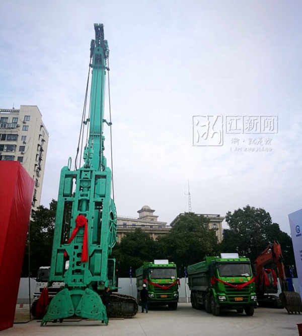在開(kāi)工儀式現(xiàn)場(chǎng),十?dāng)?shù)臺(tái)大型工程車、打樁機(jī)一字排開(kāi),幾十塊大型展板整齊陳列,不少頭戴安全帽的工人已經(jīng)擼起袖子干了起來(lái)。不遠(yuǎn)處“秉持浙江精神,干在實(shí)處,走在前列,勇立潮頭”、“樹(shù)立‘六心’提振‘六氣’,奮力躋身全國(guó)大城市第一方隊(duì)”的標(biāo)語(yǔ)格外醒目。
