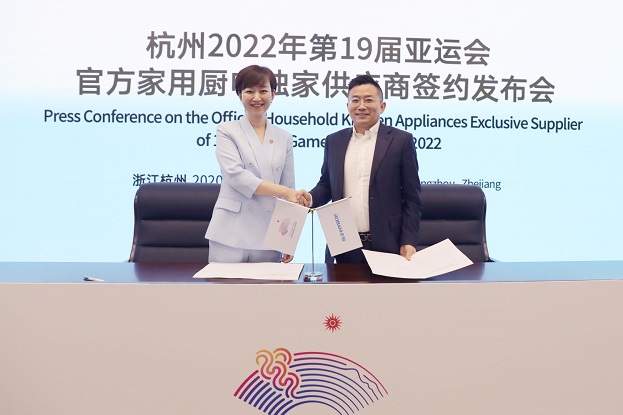 央廣網(wǎng)杭州7月7日消息(記者李佳 謝夢潔通訊員陳亮 孔嘉雯)7日,杭州2022年第19屆亞運會官方家用廚電獨家供應商簽約發(fā)布會在亞組委機關(guān)大樓會議室舉行。杭州老板電器股份有限公司成為杭州亞運會官方家用廚電獨家供應商,這也是杭州亞運會首個官方獨家供應商。