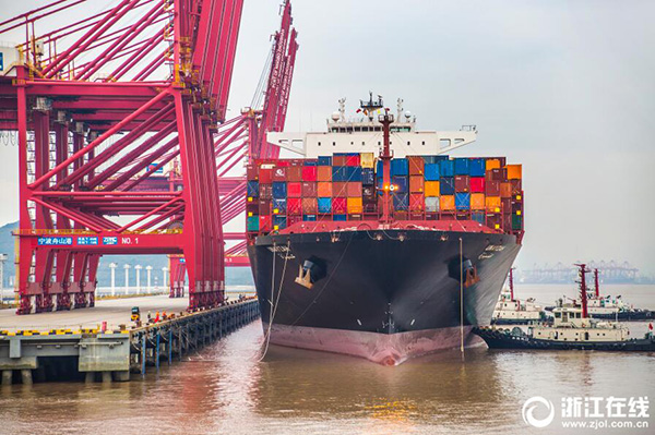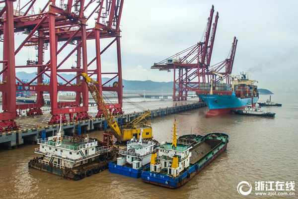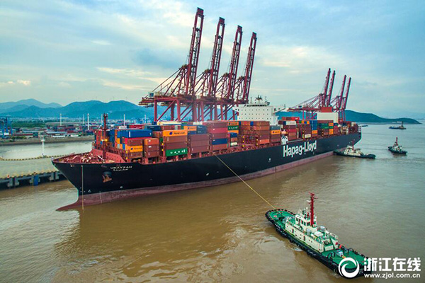 6月3日下午18時,“馬士基卡迪夫”集裝箱輪在寧波舟山港大浦口集裝箱碼頭完成1347標(biāo)準(zhǔn)箱的卸載作業(yè)后剛剛離港,“阿拉伯烏奈札”號輪又在三艘拖輪的協(xié)助下靠上了大浦口碼頭,進(jìn)行1690標(biāo)準(zhǔn)箱的卸載作業(yè)。據(jù)舟山海關(guān)介紹,今年1至5月份,大浦口集裝箱碼頭實(shí)現(xiàn)集裝箱吞吐量545466標(biāo)箱,同比增長16.6%。(拍友 姚峰 王暉 攝)