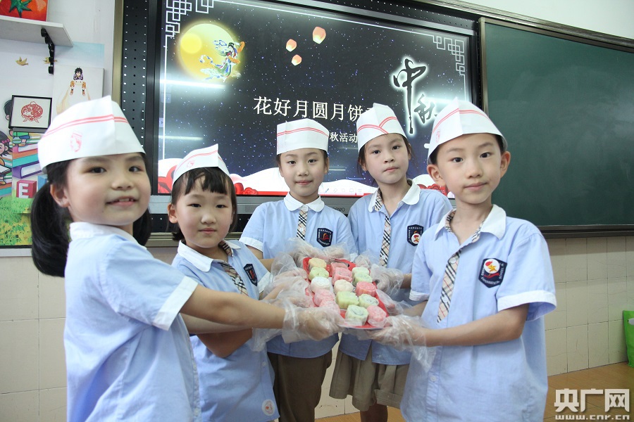 9月19日,寧波市實驗學校201班的學生在老師的指導(dǎo)下制作月餅 (央廣網(wǎng)發(fā) 王柏華 攝)
